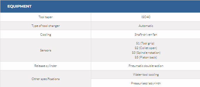 • Tools holder availabile: BT40 and ISO40 Hiteco