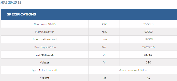 - HIGH POWERHigh power (25 KW) starting from 9000 RPM with asynchronous technology