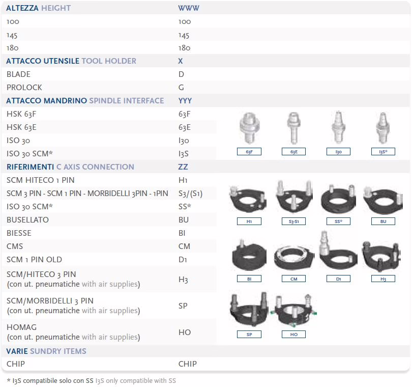 - Available tool holders : ISO30, HSK 63F e HSK 63E