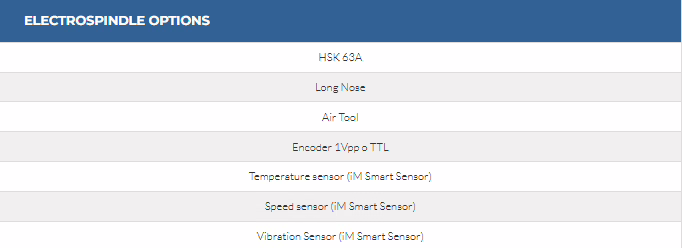 - Wide range of electrospindle powers available