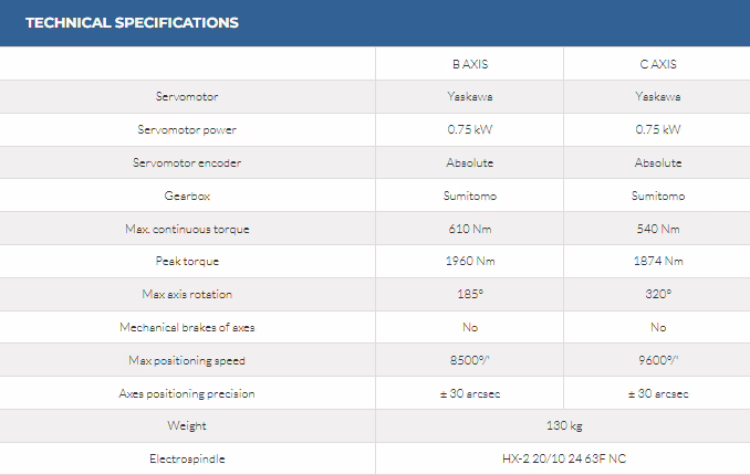 - Extreme machining stiffness thanks to the tilting B axis that generates minimum torque on the rotating axes