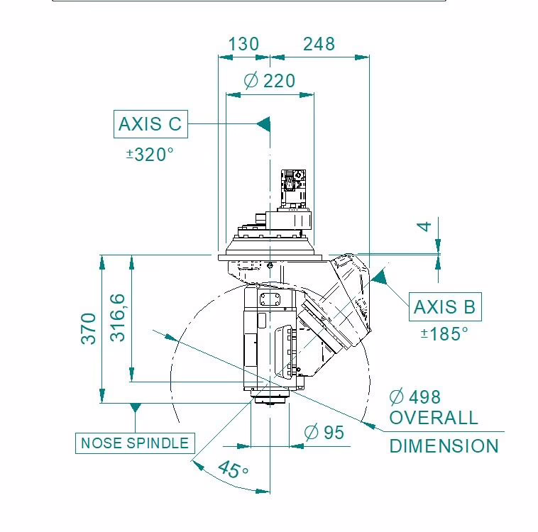 - Extreme machining stiffness thanks to the tilting B axis that generates minimum torque on the rotating axes