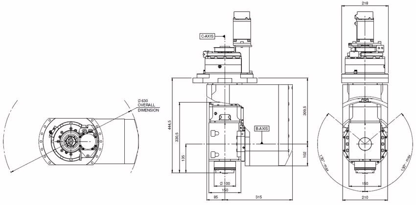 - Maximum coverage of processing areas (Ø 630 mm overall dimension)