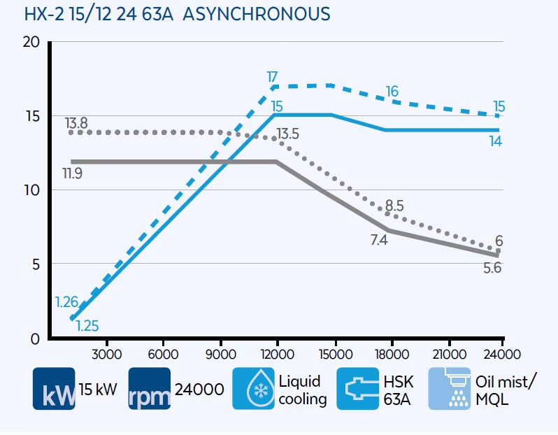 - Electrospindles available with a wide range of power levels (up to 25 kW)