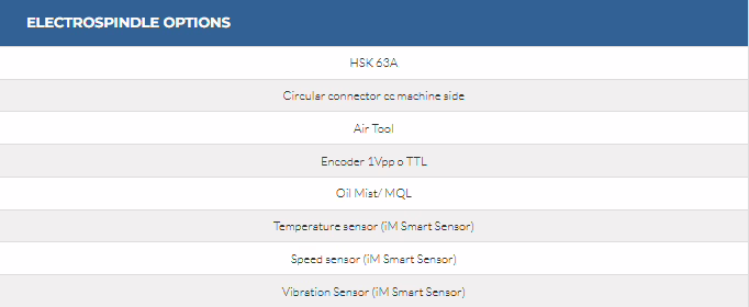 - Electrospindles available with a wide range of power levels (up to 25 kW)