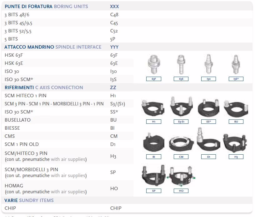 - Available tool holders : ISO30, HSK 63F e HSK 63E